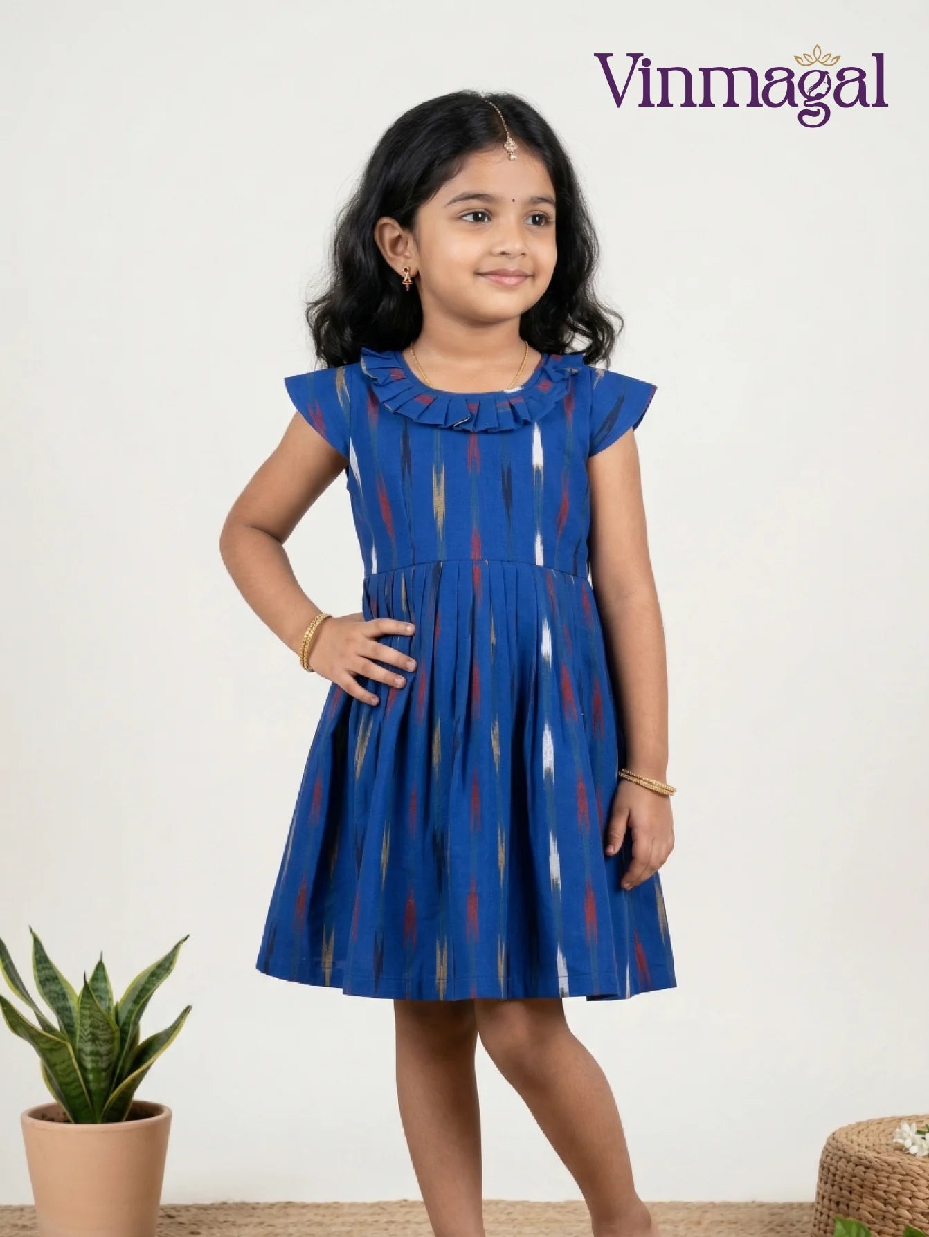 Blue Ikkat Cotton Frock – Trendy Casual & Party Wear Dress for Girls